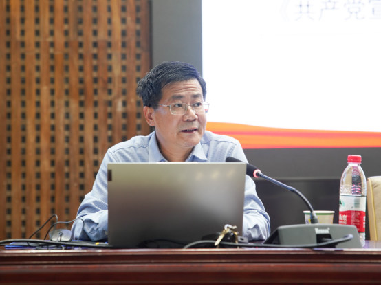 易兵结合“我国科技创新对经济增长的贡献”案例,从“马克思主义信仰、共产主义远大理想、中国特色社会主义共同理想”三个方面,讲述了“理想信念”的内涵及其重要性。他指出,做好真学真信,需要从三个方面来汇聚奋进力量,一是用四个伟大成就激励自我,汲取砥砺前行的力;二是用党的创新理论武装自我,积蓄力学笃行的力量;三是用伟大建党精神塑造自我,迸发敢为先锋的力量。