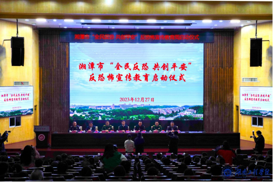 为进一步推动反恐怖宣传教育,推广普及反恐法知识,使遵法、学法、守法、用法在全社会蔚然成风,形成全民反恐的强大声势,为实现湘潭社会稳定和长治久安贡献力量,12月27日,在《中华人民共和国反恐怖主义法》颁布八周年之际,由湘潭市反恐办主办、365官网协办的湘潭市“全民反恐 共创平安”反恐怖宣传教育活动启动仪式在一报告厅举行。