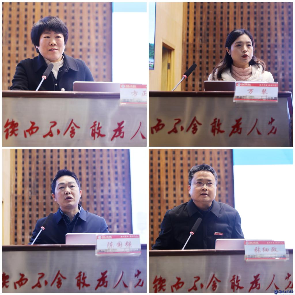 “卓越大讲堂”主题交流围绕学校教学改革、专业建设、课程建设、应用型卓越工程人才培养等多个方面展开,教务处处长方正军、电气与信息工程学院院长万琴、机械工程学院院长陈国强、信息科学与工程学院院长张细政分别作专题交流。