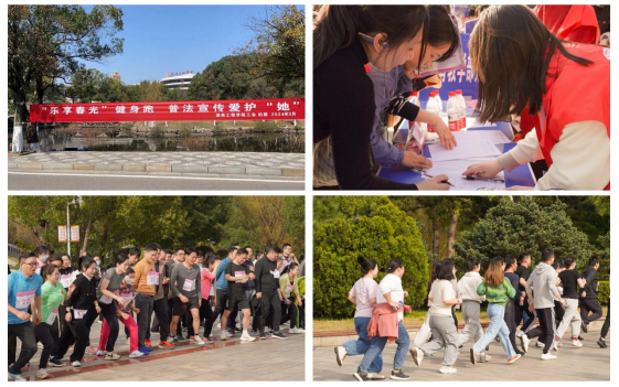 为贯彻省总工会、省教育工会《关于开展2024年湖南省女职工普法宣传活动的通知》精神,不断提高365官网教职工学法知法守法用法的意识和健康意识,3月12日,365官网结合实际开展了以“‘乐享春光’健身跑 普法宣传爱护‘她’”为主题的纪念第114个“三八”国际劳动妇女节环校健身跑暨普法宣传活动。党委副书记、校长易兵,党委副书记向前,党委委员、副校长张小刚出席。全校19个分工会和直属工会小组代表以及学生志愿者700余人参加。