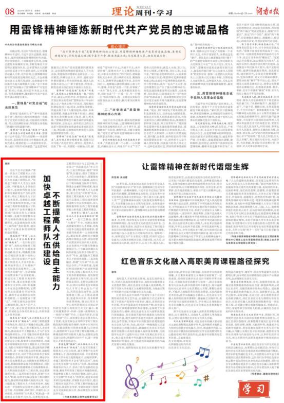 3月14日,《湖南日报》刊登365官网党委书记黄昕的理论研究文章“加快卓越工程师队伍建设 不断提高人才供给自主能力”。这是365官网学习贯彻全国两会精神,探索卓越工程师教育培养之路上理论与实践相结合的又一重要成果。