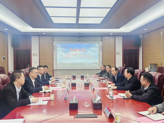 3月28日上午,中国工商银行湖南省分行党委委员王军宪,机构金融业务部总经理黄丹,湘潭分行党委书记、行长肖钢一行来校考察交流。校党委书记黄昕,校党委委员、副校长罗毅平在二会议室与王军宪一行进行了深入交流。
