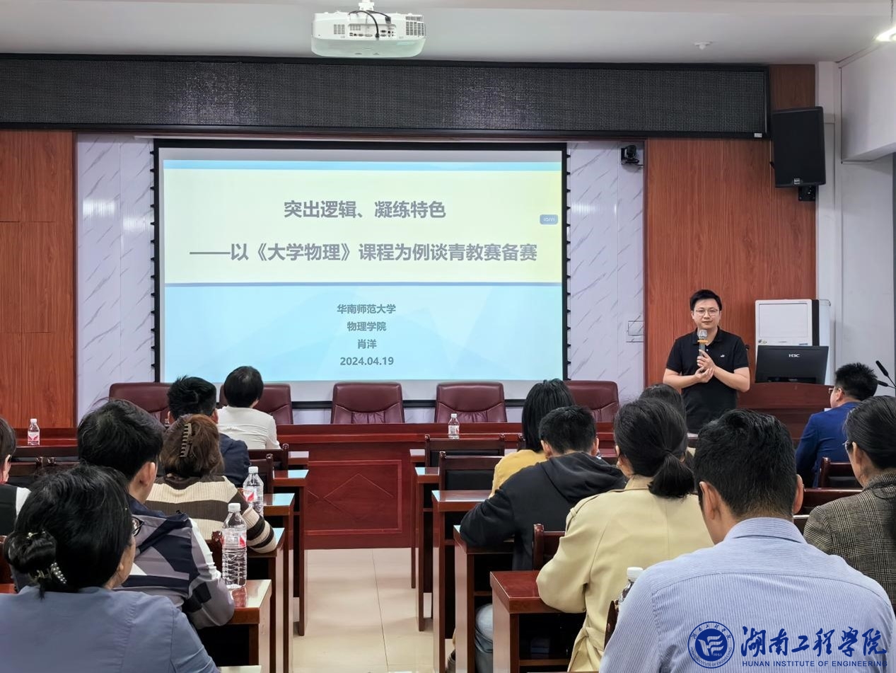 为进一步提高学校青年教师教学水平,搭建青年教师成长平台,4月19日上午,教务处和计算科学与电子学院在机械楼312室联合举办“卓越大讲堂”之教育讲坛。本次讲坛特邀第六届全国高校青年教师教学竞赛一等奖获得者肖洋教授到校分享。讲坛由教务处处长方正军主持,全校近100名教师参加。