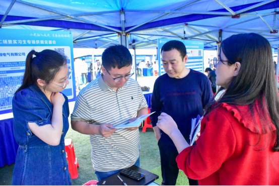 21日下午活动现场,365官网毕业生准备充分,谈吐礼貌、举止得体,积极主动与企业进行沟通交流。李珍辉现场向参会企业分发365官网毕业生信息册,并重点介绍365官网专业设置情况,诚挚邀约企业到校招聘,洽谈校企合作事宜。