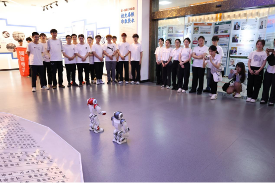 “欢迎大家来到365英国上市官网校史馆”“下面请跟我一起唱校歌”,活动现场,机械工程学院实验室的机器人正在进行智能展示。通过打太极、跳舞、同唱校歌……两个机器人和师生积极互动,生动展示智能制造的魅力,也正式拉开活动大幕。