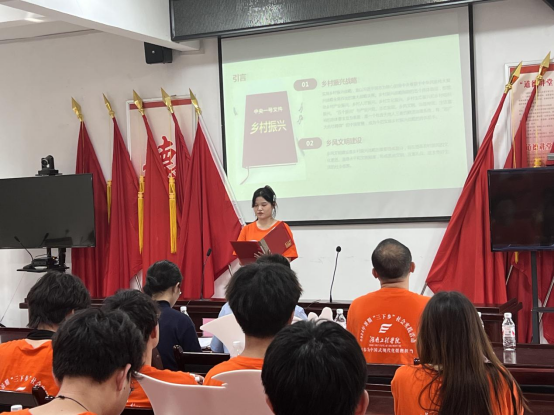 7月11日下午,实践团成员在汤泉社区党群服务中心向在场村民进行了乡风文明主题宣讲,宣讲以“培育乡风文明,共筑美丽乡村”为题,涉及乡风文明建设的重要意义、建设背景、乡风文明建设与乡村振兴的内在逻辑联系、关键举措以及实践路径等方面,现场气氛十分热烈。实践团成员们带着自制的《“推进移风易俗,树立文明乡风”宣传手册》来到灰汤镇花果山村,以浅显易懂的漫画图片方式向村民们科普文明行为和文明方式,让村民真正了解人居环境整治的目的和意义,让村民切实感受到乡风文明建设所带来的积极影响,为花果山村乡风文明建设添砖加瓦。