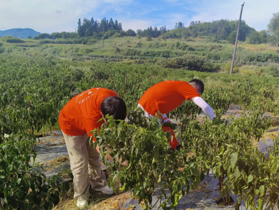 实践团带着专业知识与满腔热情,在辣椒基地、柑橘基地、梨园里,帮助村民采摘水果、打包,并与村民们亲切交流,详细了解了辣椒、柑橘等产业的种植情况与面临的挑战。