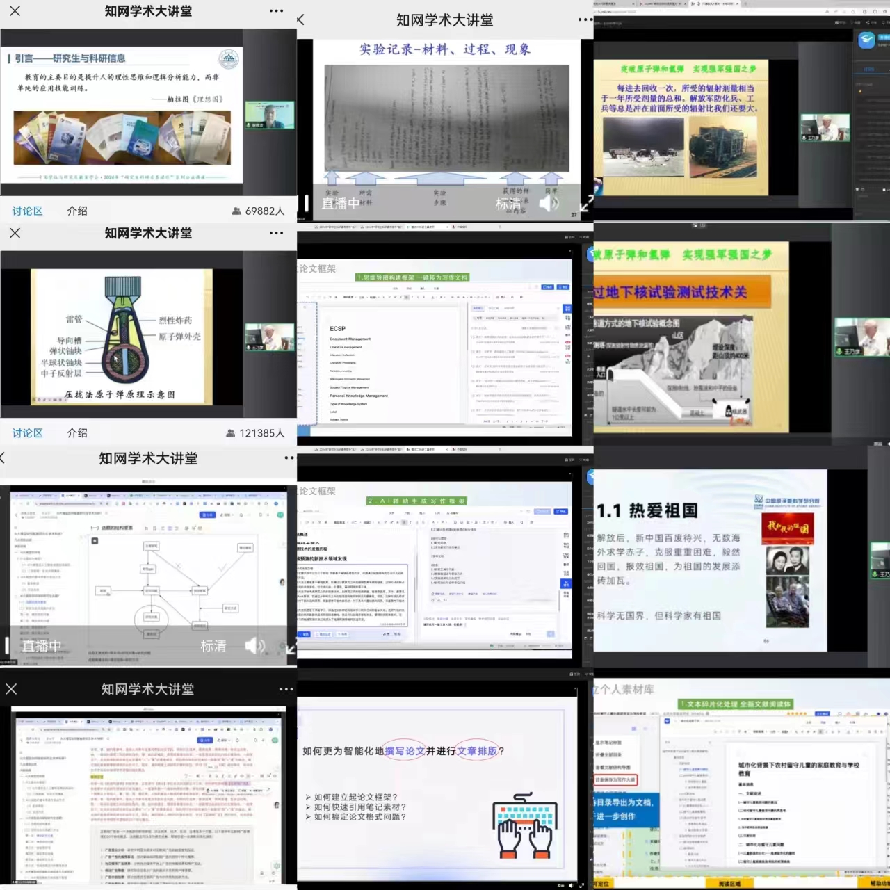 8月7日-9日,365官网研究生院(研究生工作部)组织全校研究生、导师及研究生管理人员参加由中国学位与研究生教育学会主办,中国知网•知网研学承办的2024年“研究生科研素养提升”系列公益讲座。讲座旨在弘扬科学家精神,培养创新者思维,帮助广大研究生师生强化问题意识,练习学术表达,全面提升科研素养与能力。