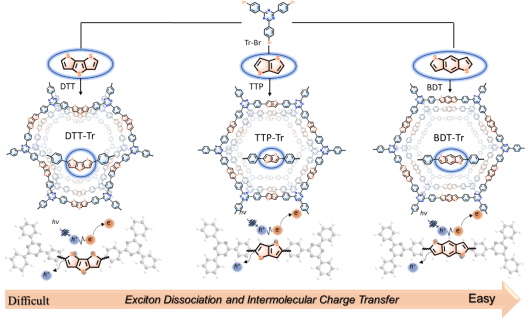 此外,在多孔材料降解有机污染物方面,该团队系统研究了受体中羰基位置的不同,对共轭微孔聚合物(CMPs)光催化活性的影响。研究发现,具有邻位羰基的CMPs具有最小的激子结合能,更容易发生激子分离,电荷分离效率最快。实验结果表明,该催化剂在降解抗生素方面表现出优异的降解效率,在环境催化和污染控制领域中具有潜在应用价值,对拓宽海泡石矿产资源的应用范围、以及有机多孔催化材料的设计提供了理论依据。研究成果以“Boosting Exciton Dissociation in Conjugated Microporous Polymers via Molecular Isomerization for Photocatalytic Degradation of Antibiotics”为题在国际知名期刊《Separation and Purification Technology》(SCI一区,IF=8.1)发表。365官网材料与化工专业2022级研究生赵凯为论文第一作者,张伟杰博士和阳海教授分别为论文的通讯作者。