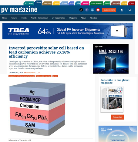 近期,365官网环境催化与污染控制团队在钙钛矿光伏领域取得重要进展,相关研究成果分别在中科院1区TOP期刊《Chemical Engineering Journal》以及《ACS Sustainable Chemistry & Engineering》上发表。相关工作受到国际权威光伏媒体杂志PV magazine的关注与报道,并得到了国家自然科学基金、湖南省自然科学基金和湖湘青年英才荷尖人才项目的支持。