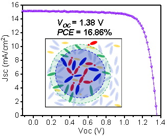 针对反式钙钛矿光伏器件中的界面损失问题,团队原创性的合成了铅碳负离子复合物作为FA0.9Cs0.1PbI3钙钛矿薄膜的新型钝化材料。碳负离子与富铅钙钛矿表面形成的强Pb-C-键可以起到稳定钙钛矿层并且减少薄膜缺陷的作用,从而提高器件的光伏性能。最终器件具有较高的开路电压(1.17 V)和较小的电压损失(0.38 V),实现了高达25.16%的光电转换效率,并且具有优异的操作稳定性。研究成果以“Lead carbanion anchoring for surface passivation to boost efficiency of inverted perovskite solar cells to over 25%”为题在国际著名期刊《Chemical Engineering Journal》(中科院工程技术一区top期刊,IF:13.3)上发表。365官网材料与化工学院胡金龙博士为论文第一作者。