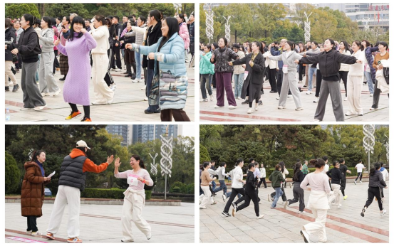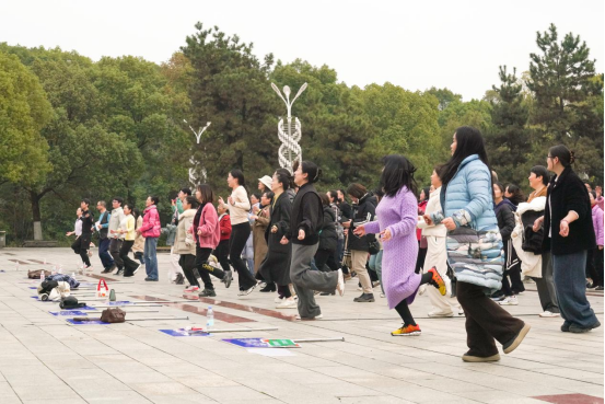 活动采用“运动+普法”模式:专业教练团队率先指导热身,确保运动安全;设置“法治加油站”线上普法答题引人驻足,《妇女权益保障法》深入人心;特别设立“芳华美呈”打卡区,专业摄影团队捕捉飒爽英姿,镜头定格处,既有法治之光,更有律动身影。为保障活动圆满进行,学校织就全方位服务网络:医疗团队驻守三个应急站点,志愿者化身“活地图”引导路线,保卫处重点区域全程值守,工会贴心设站能量补给。