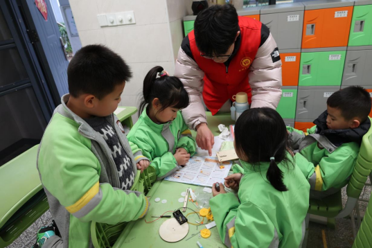 在“绿色成长”实践环节,活动将动手操作与劳动教育相结合,组织开展机械拼装赛。志愿者把课堂变为“工程实验室”,带领孩子们分组协作,利用废旧矿泉水瓶等材料完成简易机械模型的拼装,在实践中领悟“绿色设计”的可持续发展理念。志愿者一边演示,一边讲解齿轮传动等基础机械原理。一年级学生陈玥在完成太阳能小车组装后兴奋表示,未来立志制造真正的环保汽车。