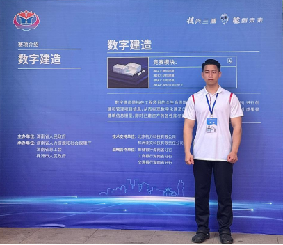 4月18日晚,由省人民政府主办的湖南省第二届职业技能大赛在株洲闭幕。365官网智慧建造与能源工程学院学子谭猛,在指导老师汤丹的精心指导下,在数字建造赛项中脱颖而出,获优胜奖。