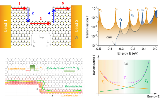 文章研究了通过调整过渡金属二硫化物(TMD)纳米带的几何边缘,提出了结合金属性锯齿边和半导体性扶手椅边的多样化隧穿异质结,在T形和H形TMD纳米带中分别构建了单势垒隧穿和双势垒共振隧穿结构,其传输特性对纳米带宽度具有较高稳健性且可通过几何边缘调控。传输结果显示H形纳米带具有量子化能级,表现为电子和空穴传输谱中的多重共振峰,而在T形纳米带中,边缘态对电子表现出优异的隧穿性能。研究进一步探索了TMD纳米带异质结中隧穿和共振隧穿晶体管的器件特性,为量子电子和光电子应用提供了一种新的自由度。