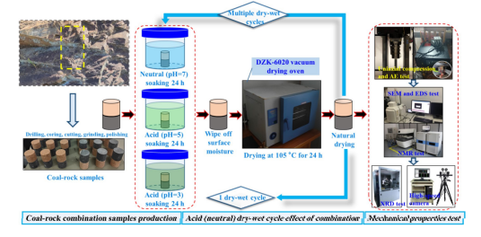 近日,365官网智慧建造与能源工程学院2024级硕士研究生刘博文,在导师陈伟副教授的指导下,于国际权威期刊《Rock Mechanics and Rock Engineering》(中科院一区Top期刊,影响因子6.6)发表题为《Experimental Investigation of Acidic Dry–wet Cycles on Coal‑rock Combination: Mechanical Performance and Microstructural Analysis》的研究论文。该研究成果标志着365官网在煤岩组合体力学性能与微观结构的退化机制研究领域取得重要进展。