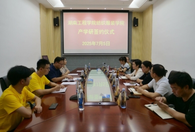 程浩南代表纺织服装学院分别与湖南融璟竹材科技有限公司、湖南享同实业有限公司2家企业负责人签订了“产学研”合作协议并授牌。双方协定在教育教学、人才培养、科学研究、社会实践、实习就业等方面开展互惠合作和交流。