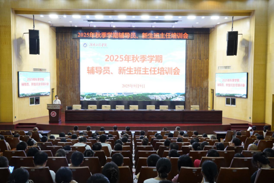 为全面加强365官网学生工作队伍建设,提升辅导员、新生班主任专业素养和工作能力,9月9日晚,365官网在一报告厅召开湖南省高校优秀思想政治工作者名师工作室主题宣讲暨2025年秋季学期辅导员、新生班主任培训会。学生工作部、保卫部、各学院党委(党总支部)副书记、全体辅导员、2025级新生班主任、应用技术学院专职班主任参加会议。会议由学生工作部部长刘琤主持。