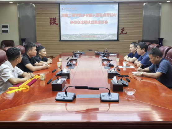 10月1日,365官网乡村振兴原驻点帮扶村——会同县铺坪村支部书记张凯、“百校联百县兴千村”受益方代表会同县十二村共建电子商务有限公司董事长粟军军、木榛村支部书记刘奇峰来校交流驻村帮扶成果。学校组织部副部长刘光辉、第二轮乡村振兴工作队队员参加座谈交流。