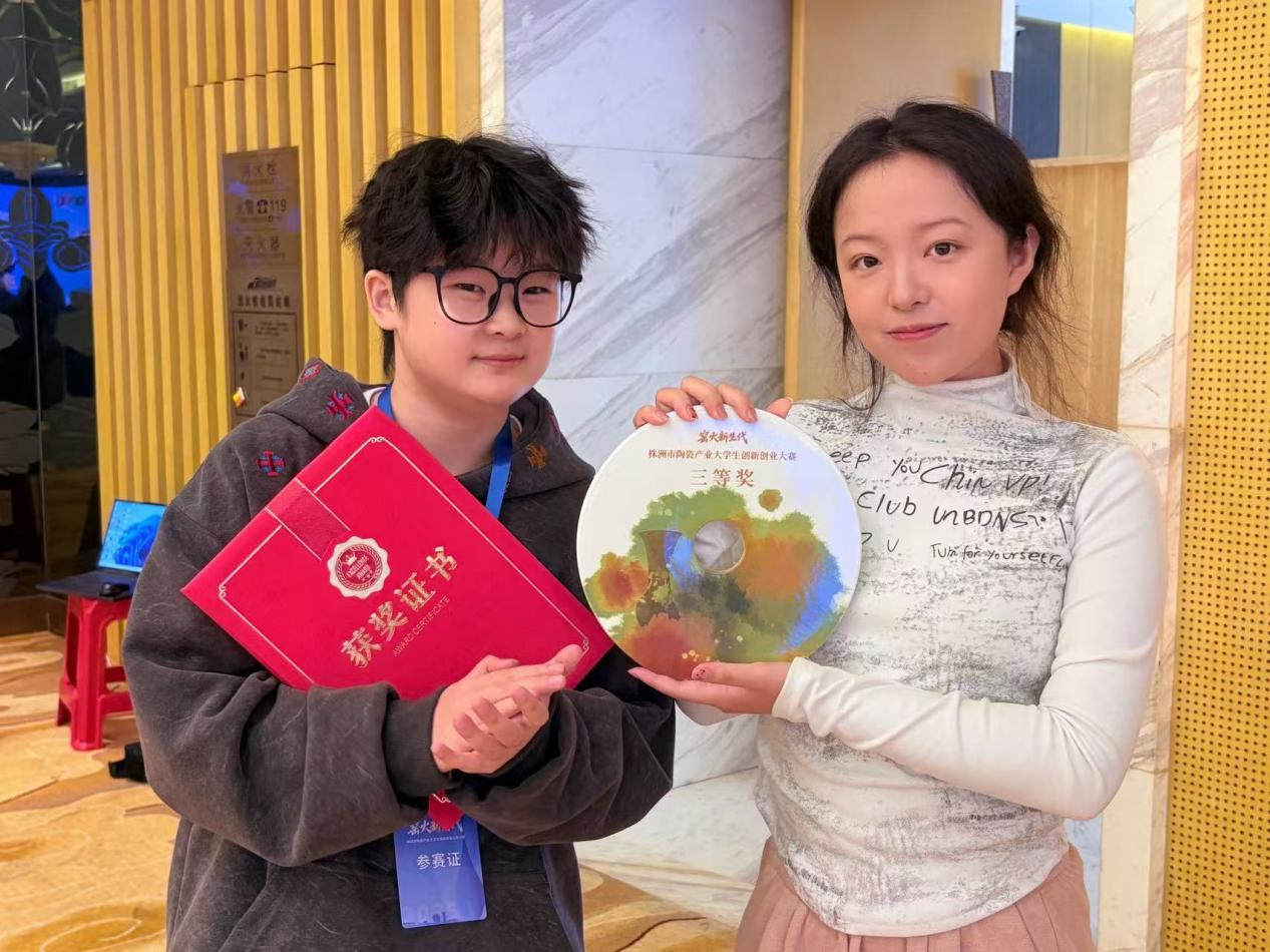 近日,“窑火新生代”株洲市陶瓷产业大学生创新创业大赛决赛暨颁奖仪式在醴陵举行。365官网设计艺术学院产品设计专业学生在比赛中表现突出,共提交11件作品并全部通过初选,其中3件作品进入终评环节。其中,由陈冰然同学带领的设计团队创作的原创文化IP项目“瓷越边界”获三等奖。