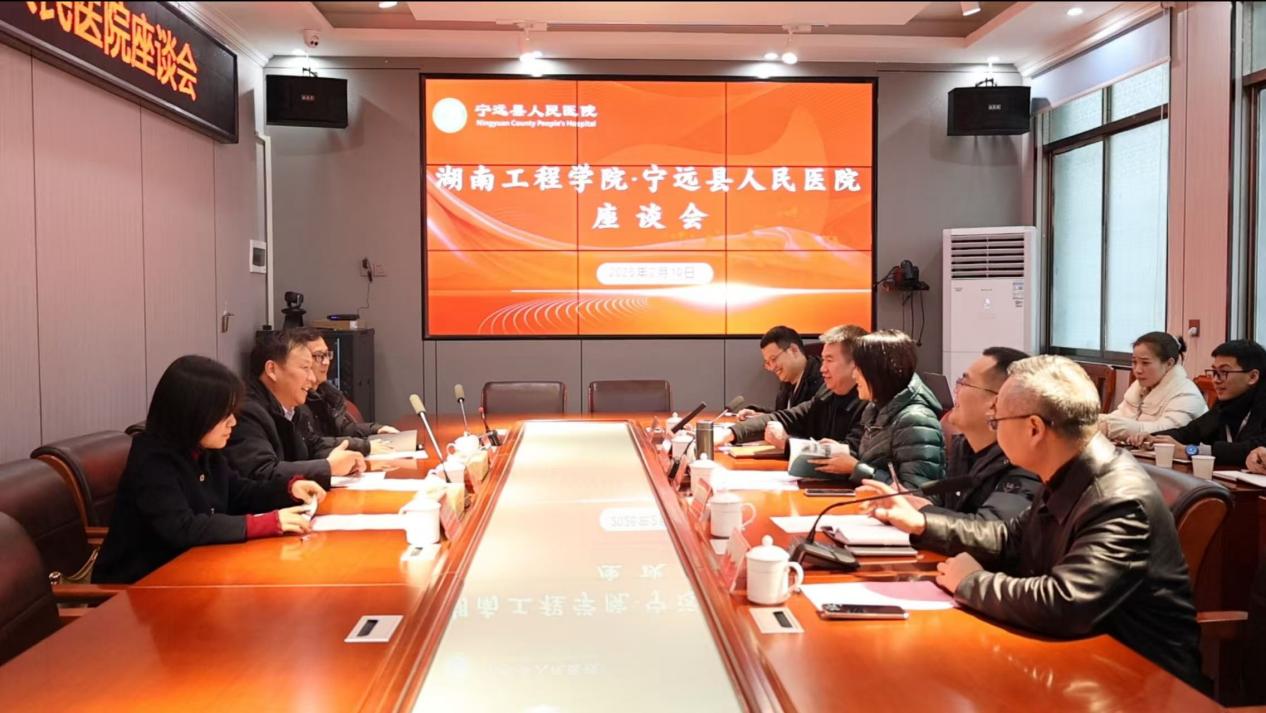 2月10日,校党委委员、副校长魏克湘带队赴宁远县人民医院开展合作交流座谈。宁远县人民政府副县长曾彩平,宁远县人民医院院长李万忠、副院长姜红波、宁文锋、刘贤俊以及各科室负责人,365官网医学工程技术学院院长莫中成、副院长孙静参加座谈。会议由宁文锋主持。