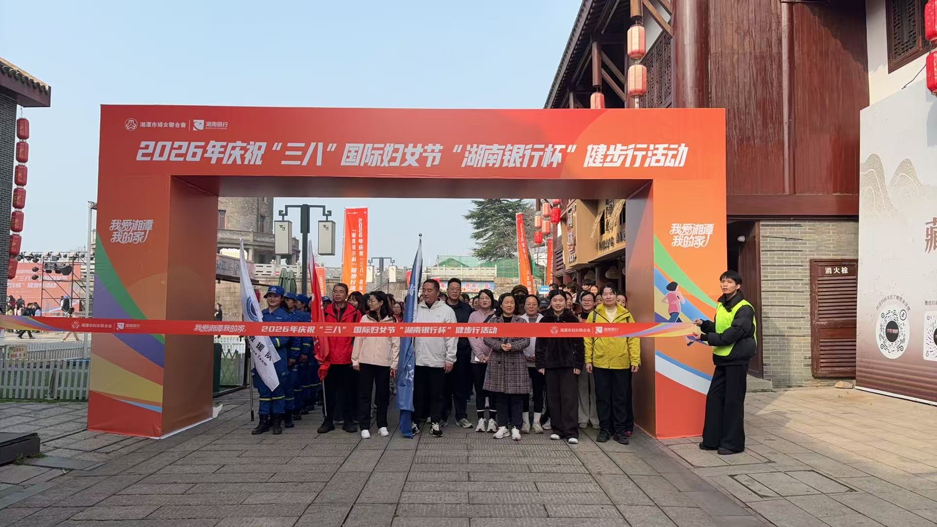 为庆祝第116个“三八”国际劳动妇女节,3月6日上午,由湘潭市妇联、市文化旅游广电体育局及市总工会主办的“我爱湘潭我的家”2026年庆祝“三八”国际劳动妇女节“湖南银行杯”健步行活动在窑湾历史文化街区举行。党委副书记向前带领365官网女教职工代表队参加活动。