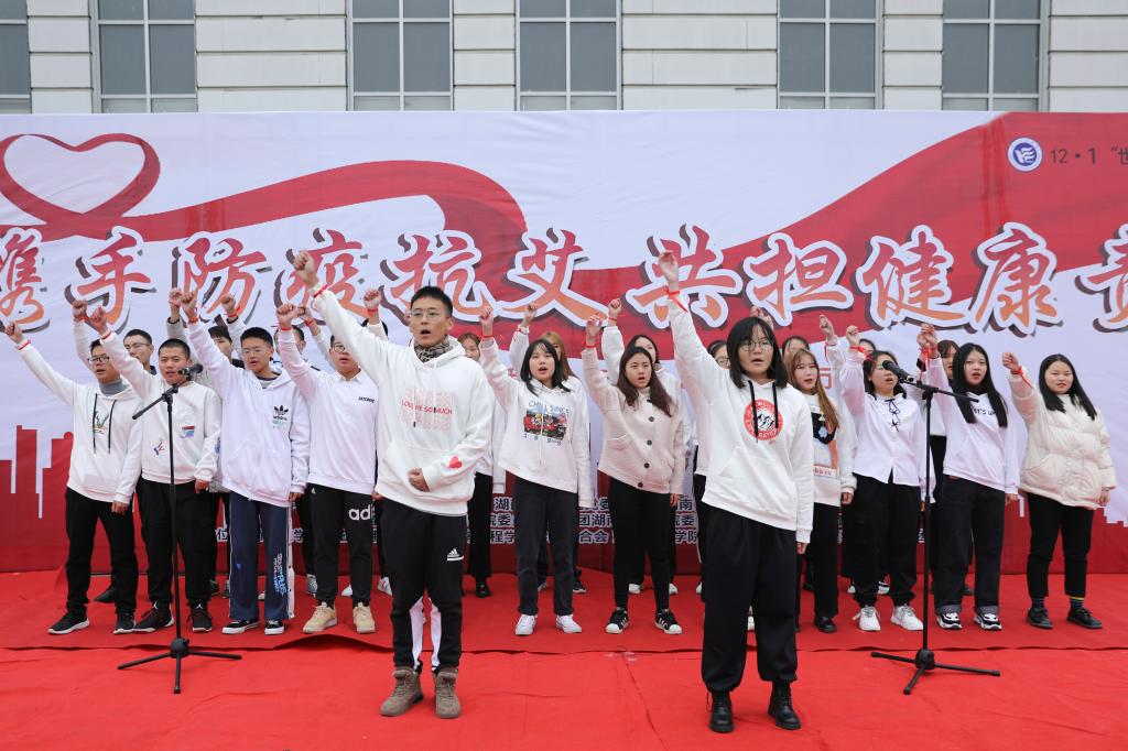 “社会已成为你中有我,我中有你的命运共同体。”外国语学院商务英语2004班任欢作代表发言,她号召大家保护自己,关爱和支持受艾滋病和新冠肺炎影响的人,共同承担社会责任。