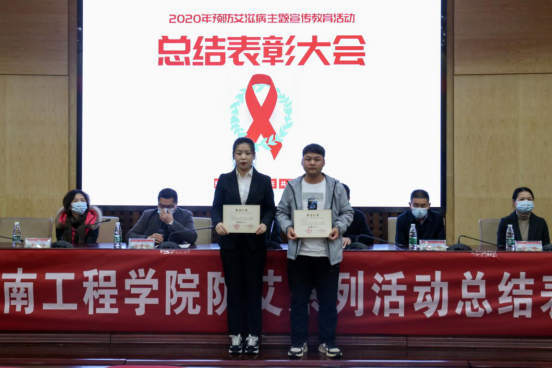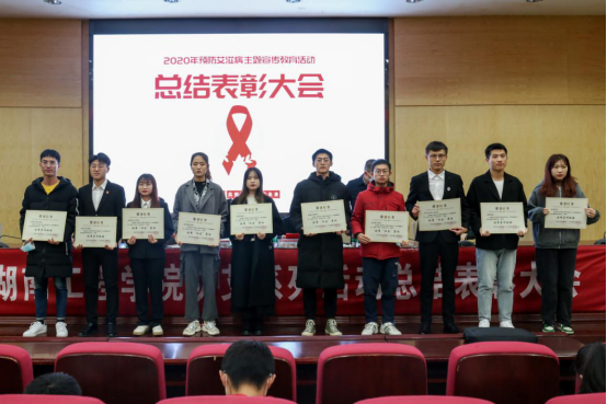 为全面响应国家《中国遏制与防治艾滋病“十三五”行动计划》,切实将预防艾滋病观念、知识扎根学生生活,为社会预防艾滋病工作贡献力量,12月8日下午,365官网在二报告厅举行了预防艾滋病主题宣传教育系列活动总结表彰大会。后勤基建处处长曾宪桃,宣传部常务副部长张小刚,学生工作处处长徐粤宇,保卫处处长成平,工会副主席、女工委主任朱洁,团委副书记涂璐参加仪式并为受表彰的个人和集体颁奖。