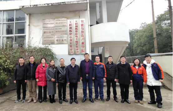 为进一步深化产教融合,助力学校发展,1月26日,“智能与智造产业学院”成立暨揭牌仪式在工程训练中心举行。校长易兵,湖南吉利汽车部件有限公司常务副总经理丁云长,新松机器人自动化股份有限公司湘潭分公司副总经理熊方家参加仪式。揭牌仪式由工程训练中心主任傅彩明主持。