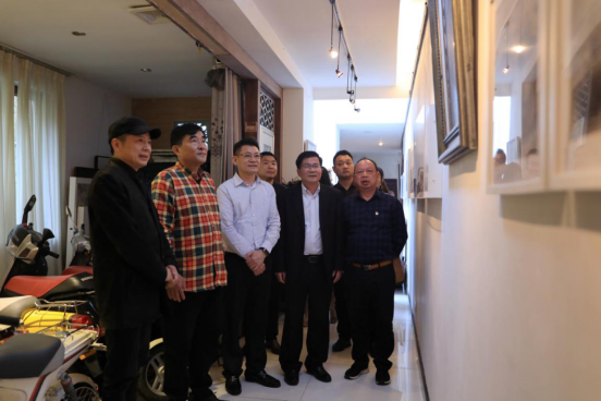 当天下午,在易兵、张小刚的陪同下,宋音池一行到设计艺术学院木鱼湖艺术区实地调研考察。“学校引艺术家来建立工作室的做法很有特色。”在各驻木鱼湖艺术家工作室内,宋音池一行与各工作室艺术家进行交流,对学校大力引进艺术家创建工作室开展实践教学的经验做法表示赞许。经过10年的不懈努力,木鱼湖艺术区先后建成了中格美术馆、“木鱼湖艺术工作室”、旭峰设计空间、陶瓷艺术收藏陈列室四大艺术板块,引进了国内多名艺术家设立工作室,成为了“开门办学”“借力办学”的典型案例。