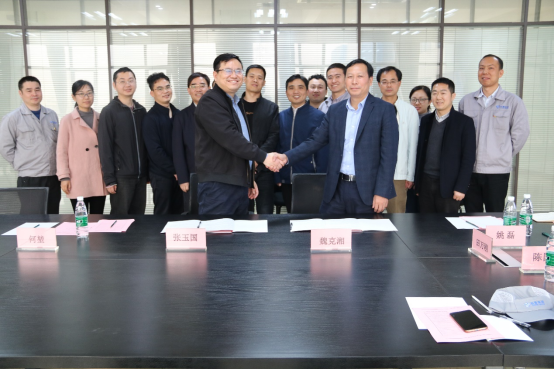 随后,魏克湘与张玉国签署了校企产学研合作协议,并举行了校企产学研合作创新发展基地挂牌仪式和教具捐赠仪式。此次交流活动落实了多项合作内容,为后续深入开展校企合作奠定了良好的基础,搭建了友谊的桥梁。