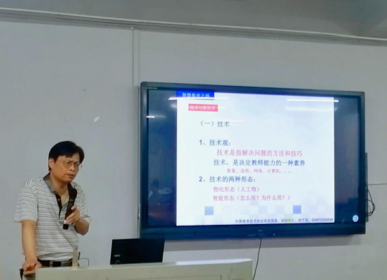 杨平展从技术引领教育、碎片化资源引起的变革、大数据时代的智慧教育、智慧教育时代的教师、基于智慧平台的课程建设与信息化教学等五个方面,通过缜密的逻辑、生动的案例、详实的讲解为广大教师呈现了一场精彩的报告。同时,杨平展通过自身多年组织信息化教学比赛的切实感受,就教师参加比赛如何准备、如何突出特色等方面指出了建设性的意见。