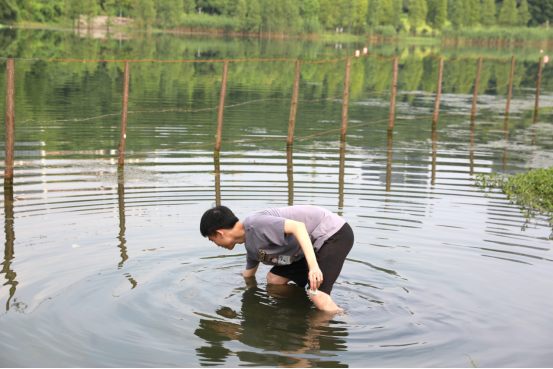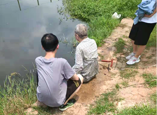 这背后有什么样的故事?记者了解到,6月25日下午1点,家住湖工花园小区82岁的陈大爷,吃过午饭便出门遛弯,走到木鱼湖边,一不小心,脚下一滑,栽倒在了湖里。中午时分木鱼湖公园,烈日炎炎,人烟稀少。刚参加完学院学生党支部第四次党史教育专题学习的刘毅和曾浩走过木鱼湖桥,便听见远处传来了急速的咳嗽声和敲打水面的扑通声。“我们迅速冲到桥对面,发现水面没有人,只有一根拐杖在水中上下击打。”刘毅称,当时俩人看到这种情况,立即判断有人落水了,来不及细想,会游泳的刘毅将手机往草丛里一抛,便跳进水中救人。