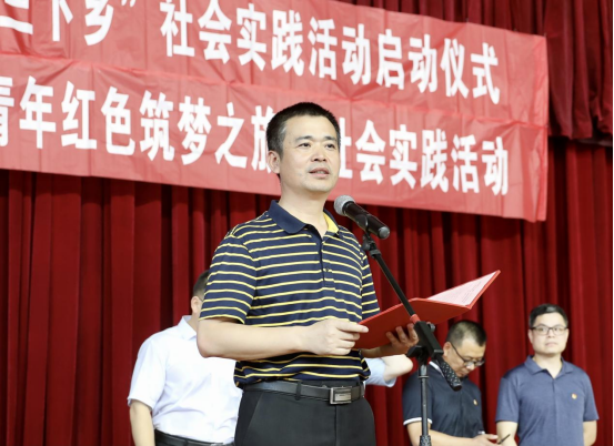 张小刚为14支实践团授旗,并对三下乡实践团提出工作要求:一是增强政治意识,推动党的相关理论、政策入乡村、入基层、入民心,用实际行动庆祝中国共产党成立100周年;二是要强化纪律意识,加强安全教育,确保“三下乡”活动安全有序;三是要全心投入,把社会实践作为“三全育人”的重要平台,为青年学生成长成才搭建好平台;四是要按照“学党史、悟思想、办实事、开新局”的要求,强化志愿服务的责任感和使命感,在社会实践中多为群众办实事,积极助力乡村振兴战略。