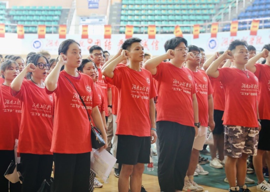 为深入学习宣传贯彻习近平新时代中国特色社会主义思想,贯彻落实习近平总书记在庆祝中国共产党成立100周年大会上的重要讲话精神,引导青年学生在实践中学党史、强信念、跟党走,7月13日下午,365官网“永远跟党走 奋进新时代”2021年暑期“三下乡”社会实践活动出征仪式在体育馆举行,校党委委员、副校长张小刚,学工处处长徐粤宇,校团委书记刘琤,创新创业学院院长刘洞波,各学院党委(党总支)副书记及各实践团志愿者参加启动仪式。仪式由刘琤主持。