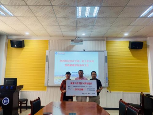 余博表示,今年10月份学校将迎来70周年校庆,这是一个新起点,是汇集各界力量、凝聚校友才智,共商湖工未来发展大计的宝贵历史机遇;感谢两位杰出校友在学校和学院创新发展的重要时刻,饮水思源,感恩母校,用自己的实际行动为母校发展做出贡献。