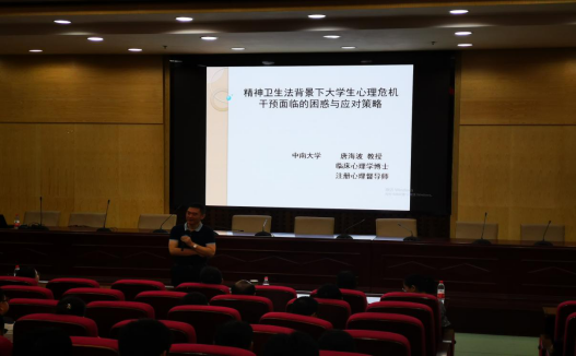 24日上午,中南大学心理健康教育与咨询专家唐海波教授带来了主题为——“精神卫生法背景下大学生心理危机干预面临的困惑与应对策略”讲座,阐述了《精神卫生法》相关内容,并结合实际,引用大量案例,给大家带来了一堂生动活泼的心理健康教育课,也为365官网辅导员更好地开展心理工作提供了重要的借鉴经验。