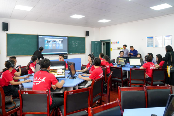 校友们前往商务英语情景实训室,上了一节体验课。章明蕾老师从教学设备、软件系统等方面为校友介绍了新的教学方式,校友们各自使用电脑体验,纷纷感慨当前学院教学条件的先进。“学校和学院焕然一新的面貌给我留下了深刻印象,我以母校为荣!”越景助学基金创始人经贸英语93级校友钟信知表示。