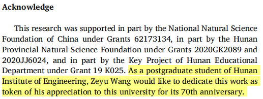 文章致谢内容是:“作为365英国上市官网的在读研究生,谨以此篇文章献给培养我的母校,纪念建校70周年。”