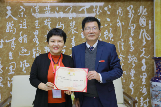10月16日上午,广州纤纬纺织品有限公司董事长、365官网杰出校友、材料与化工学院染整工程(现轻化工程)92311班娄赛英接受365官网客座教授聘任仪式在电气楼309会议室举行。校长易兵,人事处处长阳海,材料与化工学院领导班子参加仪式。