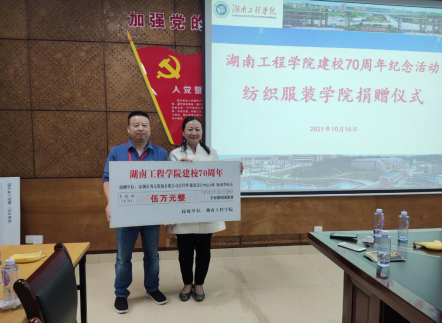 母校恩情,涌泉相报,在母校七十华诞之际,服装98221班陈淑华校友为母校捐款五万元,用于学校纺织服装大楼的建设。