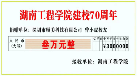 毕业后,曾小虎一直牵挂母校发展,他表示,“锲而不舍、敢为人先”的校训一直铭记于心,希望此次捐赠能为学校的发展贡献自己的力量,希望学弟学妹们在新环境下努力奋斗,不负青春,与母校一起发展。在曾小虎的努力下,他所在的深圳市顾美科技有限公司和学校建立了校企单位友好合作关系。