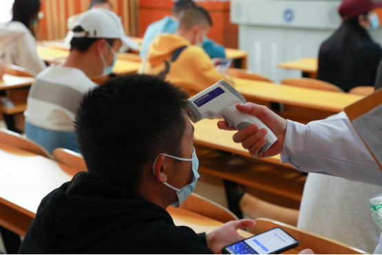 “红码”学生被安排至校门口临时隔离点,医务人员对该生进行初步流调,询问其近14天内行程和流行病学史,排查与之密切接触者,由社区派专人专车将其转运至岳塘区集中隔离点。应急处置完毕后,后勤基建处第一时间对校内相关地区进行环境及物品消毒。