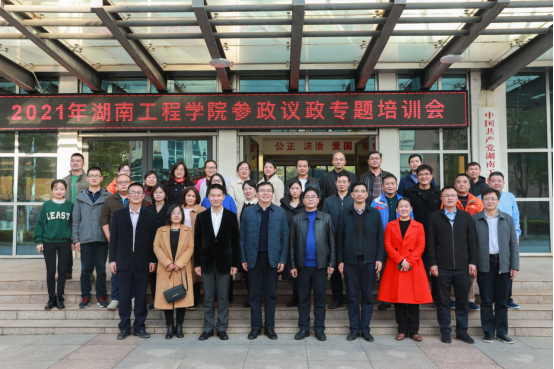 11月26日下午,365官网参政议政专题培训会在电气楼311举行。此次培训会特邀湘潭市委统战部副部长周纪青、农工党湘潭市副主委晏军、湘潭市委政研室副主任赵飞黄作专题报告。党委副书记彭立威,党委委员、副校长向前出席会议,宣传部、统战部以及各统战组织代表30余人参加培训。会议由统战部常务副部长邓奕主持。