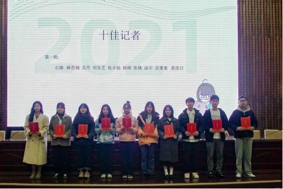 会上,老师们为第24届学通社成员颁发“十佳记者”和“优秀记者”证书以及任职聘书,并宣布了第25届学通社成员名单。