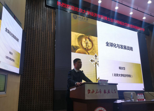 12月12日下午,教育部长江学者特聘教授,国家万人计划哲学社会科学领军人才、北京大学经济学院博士生导师杨汝岱教授来365官网,在一报告厅作题为“全球化与发展战略”专题学术讲座。讲座吸引了来自管理学院、经济学院200余名师生参加。讲座由副校长陈赤平教授主持。