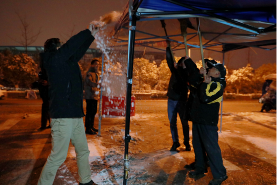 “全力投入到学校的除冰行动,确保师生出行安全!”学校学生工作处、保卫处、后勤基建处相关负责人表示,除冰行动从26日早上一直持续到深夜,27日将继续进行,各部门将责任扛在肩上,确保校园安全,为师生营造良好的工作、学习、生活环境。