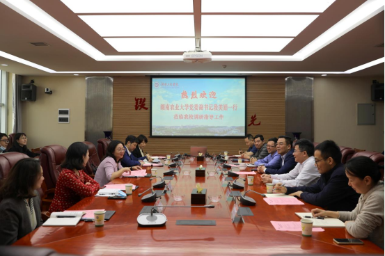 5月3日上午,湖南农业大学党委副书记段美娟一行来365官网考察交流。365官网党委书记陈岳堂,党委副书记、校长易兵,党委委员、副校长罗毅平在二会议室接待来宾。人事处、校友办等部门相关人员参加交流会。
