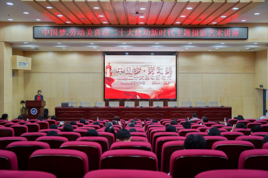 5月31日,由校工会、校团委主办的“中国梦·劳动美——喜迎二十大 建功新时代”主题摄影艺术讲座于二报告厅举行。365官网设计艺术学院教师、中国摄影家协会会员、中国高校摄影学会理事王彬主讲,校工会副主席朱洁主持,110余名师生参加讲座。