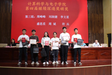 “莫忘少年凌云志,曾许人间第一流。祝学弟学妹们一战成硕!”6月13日下午,计算科学与电子学院在一报告厅举行第四届继续深造奖、英语四六级单项优秀奖颁奖典礼暨考研经验分享会,校党委委员、副校长张小刚出席,计算科学与电子学院班子、获奖学生及师生代表参加。大会由学院党总支部书记胡武平主持。
